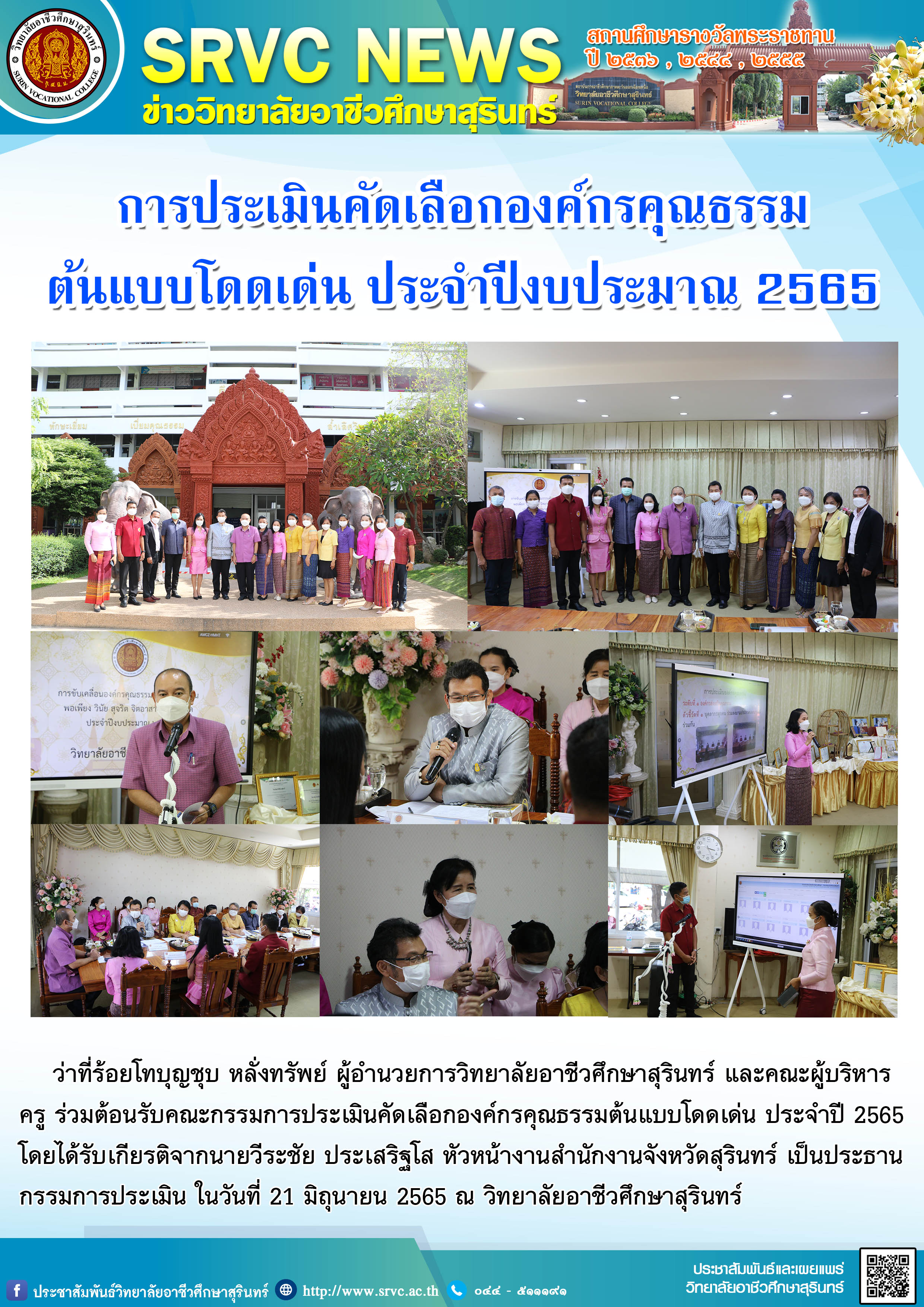 การประเมินคัดเลือกองค์คุณธรรมต้นแบบโดดเด่น ประจำปีงบประมาณ 2565