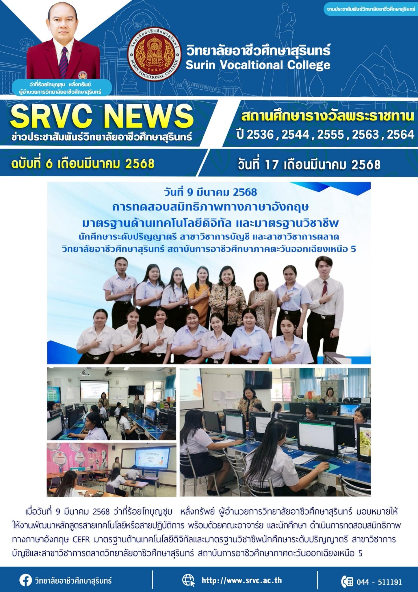 วันที่ 9 มีนาคม 2568 การทดสอบสมิทธิภาพทางภาษาอังกฤษ มาตรฐานด้านเทคโนโลยีดิจิทัล และมาตรฐานวิชาชีพ นักศึกษาระดับปริญญาตรี สาขาวิชาการบัญชี และสาขาวิชาการตลาด วิทยาลัยจาชีวศึกษาสุรินทร์ สถาบันการจาชีวศึกษาภาคตะวันออกเฉียงเหนือ 5