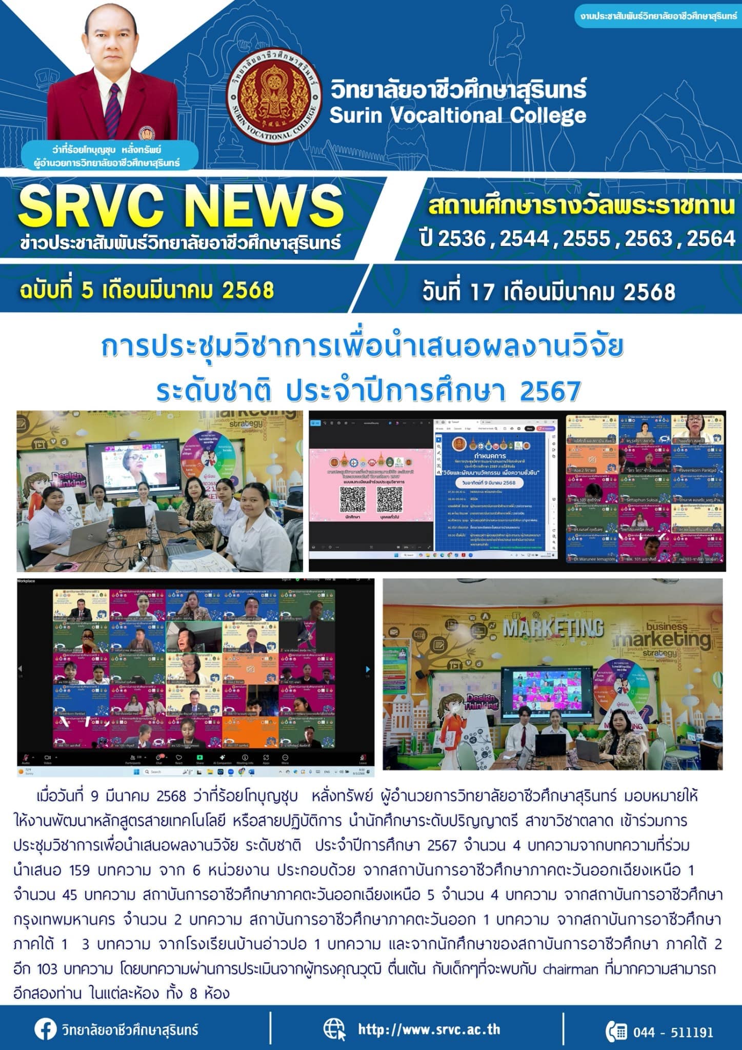 การประชุมวิชาการเพื่อนำเสนจผลงานวิวัย ระดับชาติ ในระบบจอนไลน์ ปีการศึกษา 2567