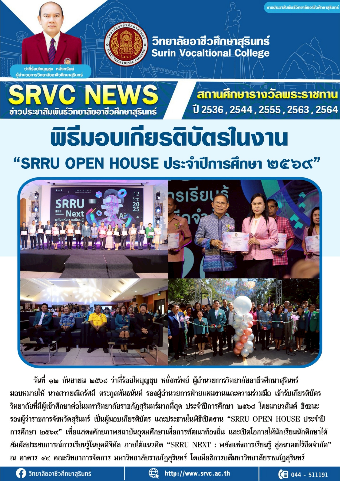 พิธีมอบเกียรติบัตรในงาน "SRRU OPEN HOUSE ประจำปีการศึกษา 2569"