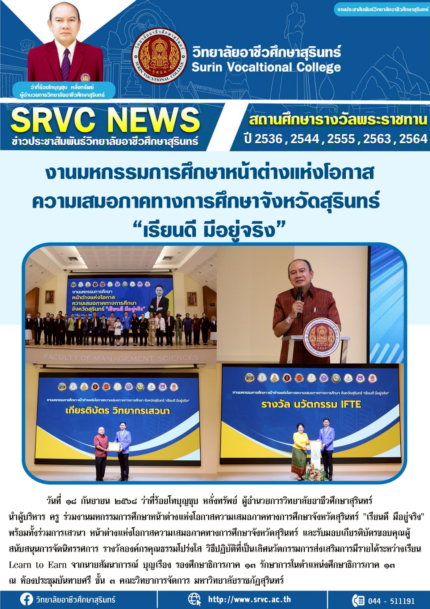 งานมหกรรมการศึกษาหน้าต่างแห่งโอกาสความเสมอภาคทางการศึกาาจังหวัดสุรินทร์ "เรียนดี มีอยู่จริง"
