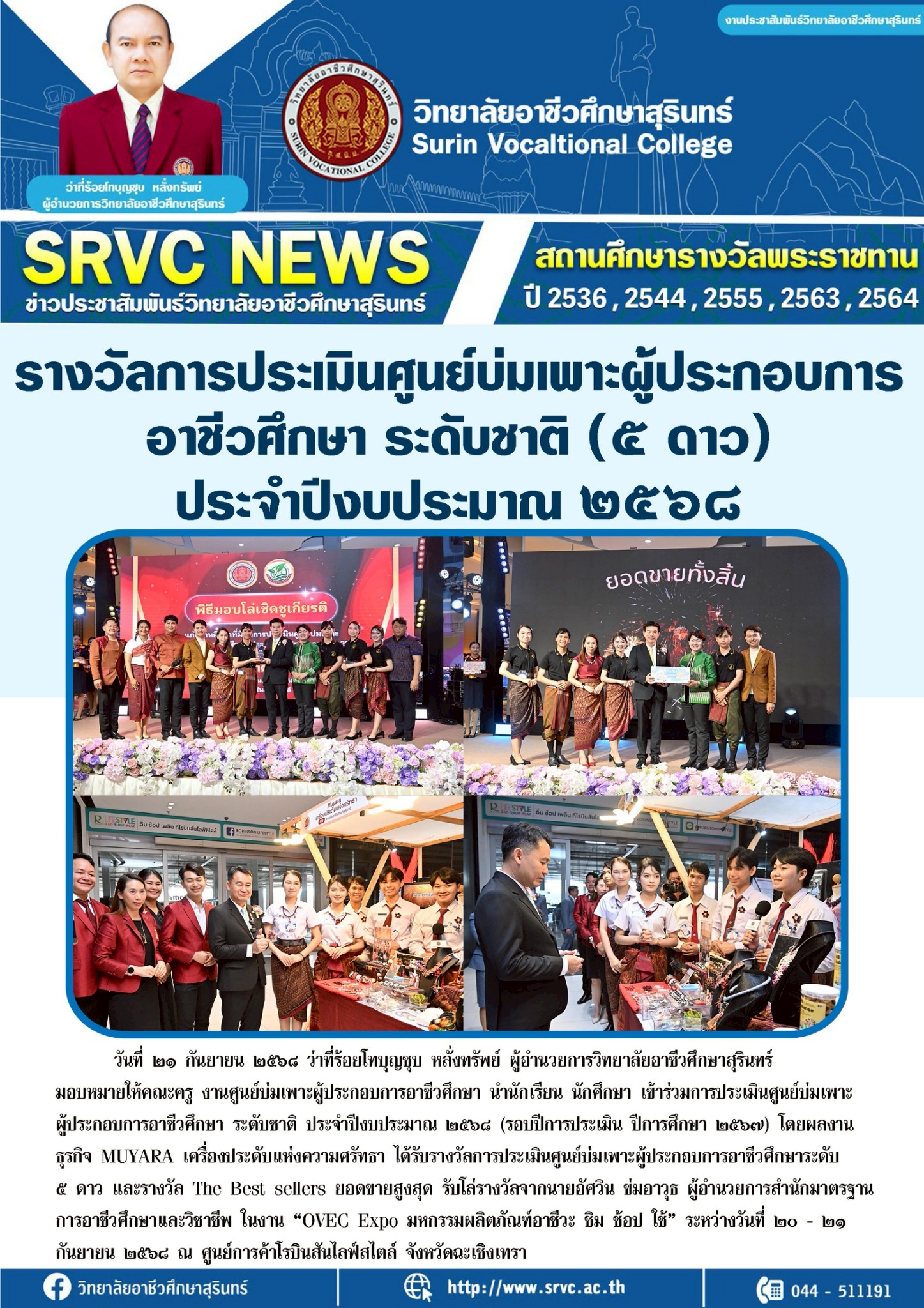 รางวัลการประเมินศูนย์บ่มเพาะผู้ประกอบการอาชีวศึกษา ระดับชาติ (5 ดาว) ประจำปีงบประมาณ 2568