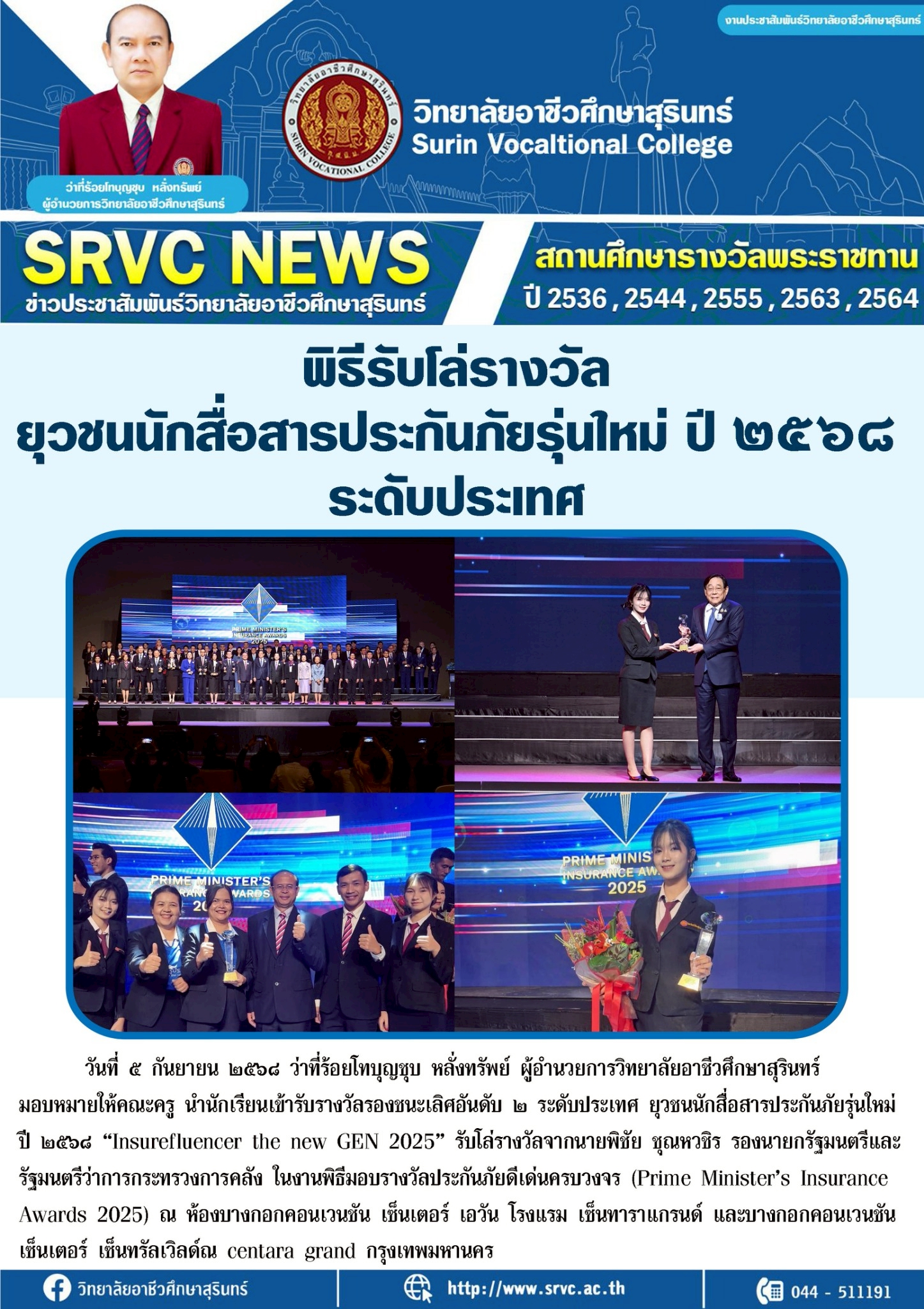 พิธีโล่รางวัล ยุวชนนักสื่อสารประกันภัยรุ่นใหม่ ปี 2568 ระดับประเทศ