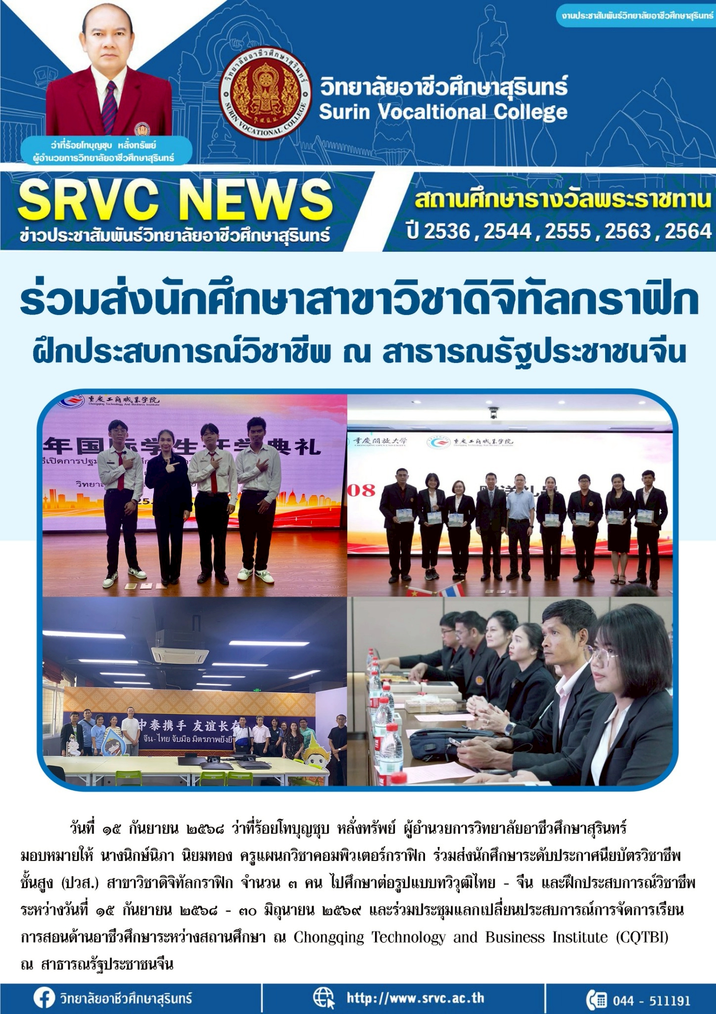 ร่วมส่งนักศึกษาสาขาวิชาดิจิทัลกราฟิก ฝึกประสบการณ์วิชาชีพ ณ สาธารณรัฐประชาชนจีน